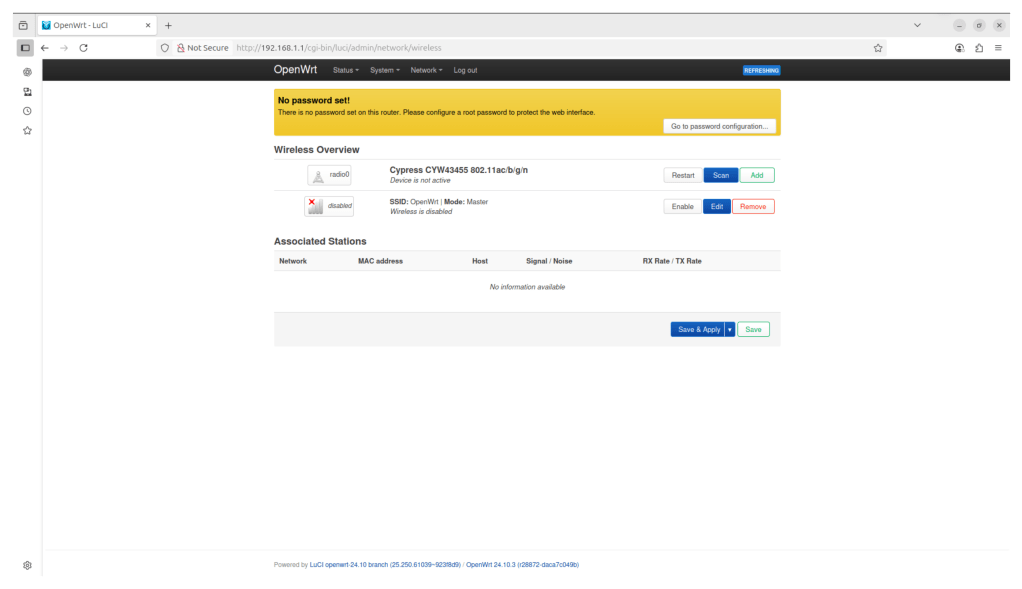 - Using a USB memory SD card reader, flash the openWrt image in the raspberry PI, however you can use any access point or home WiFi router that supports WPA3/Enterprise or openWrt with upgrade of wpad-openssl package.