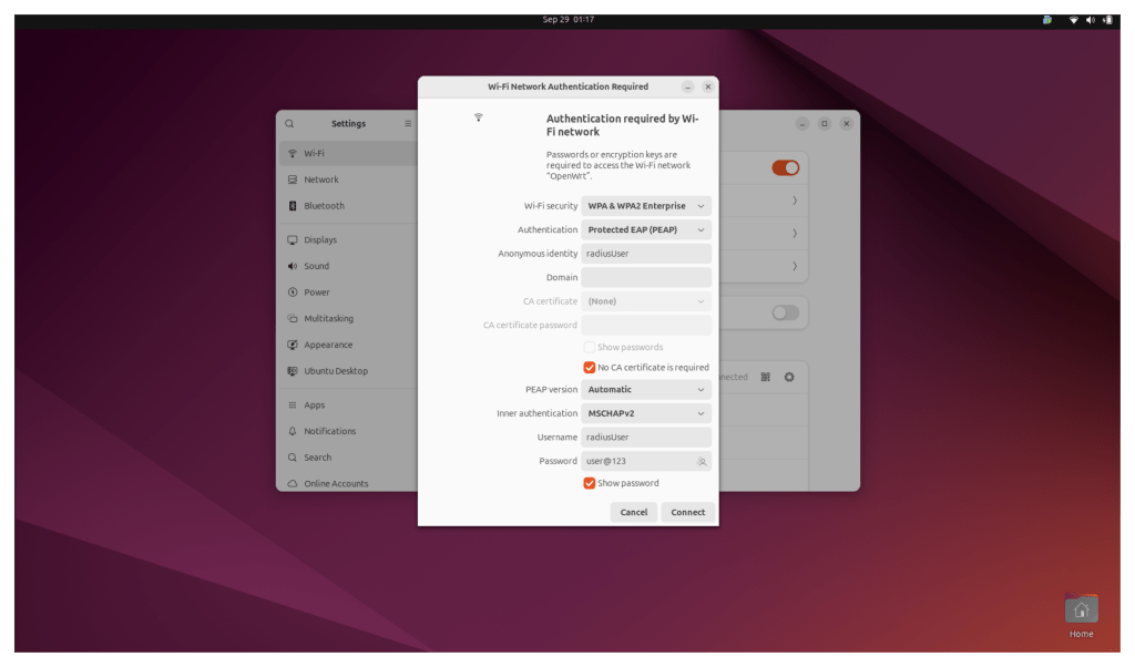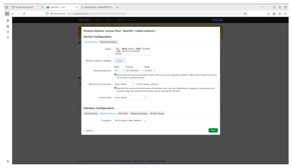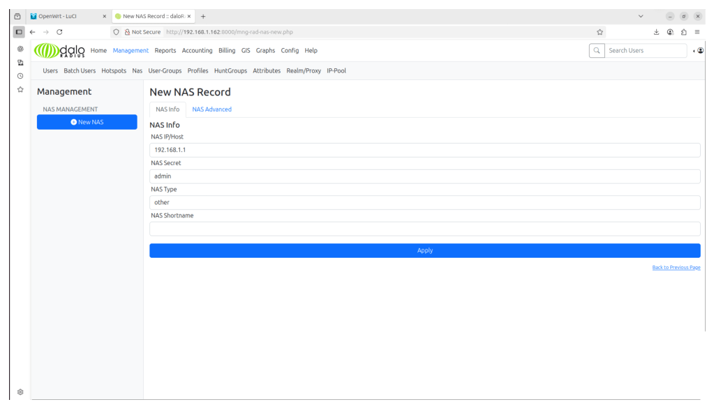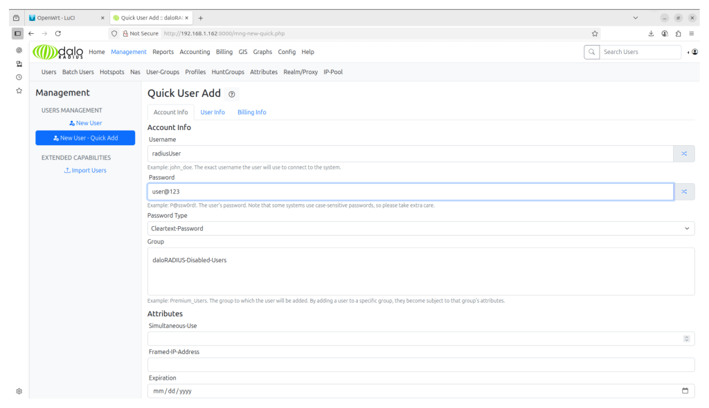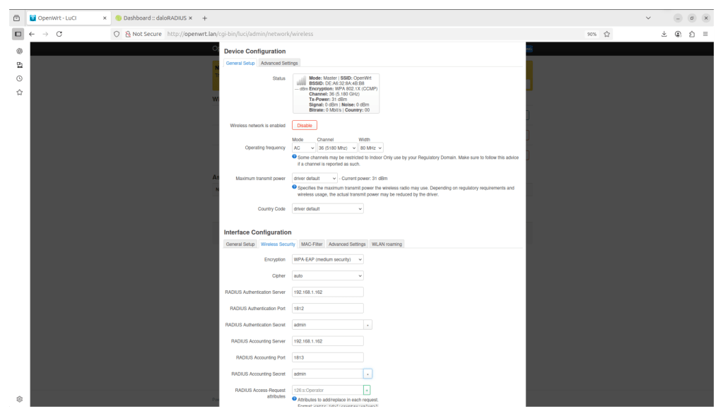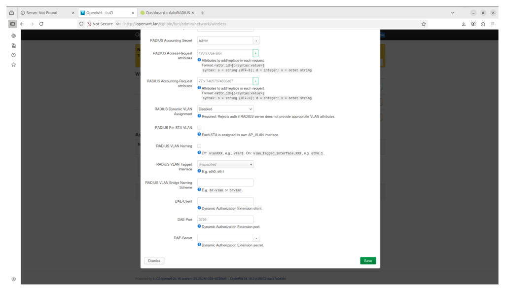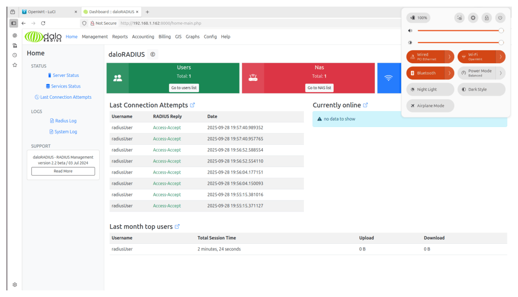 - I am using a DaloRadius server VM that is hosted on my Ubuntu laptop.