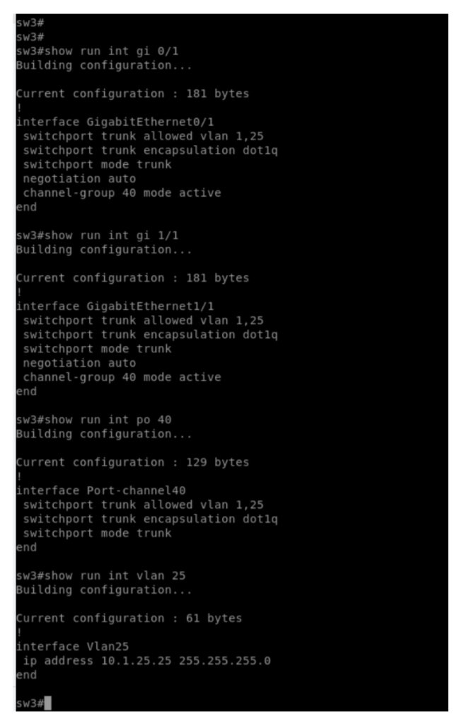 Then proceed with activating the port channel under member interfaces using the “channel-group <gr-no>” command and using LACP mode to form the port channel by setting it to “Active” on the CISCO IOS switch.