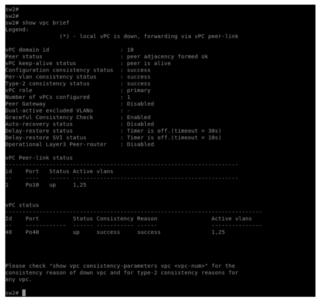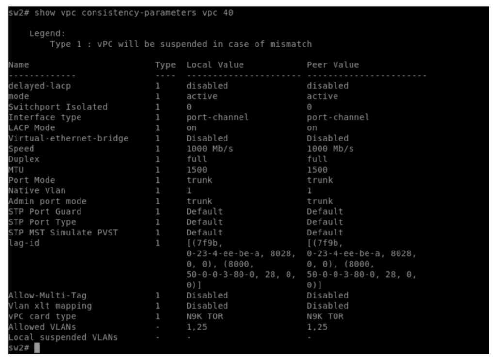 If there is any inconsistency in config, like any member link or any VLAN is missing from any peer link, it will report inconsistency under this diagnostic command.