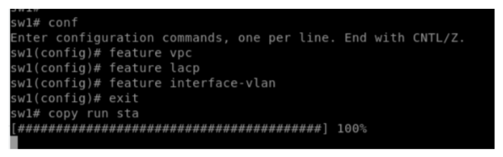 Activating feature LACP and VPC and interface-vlan: