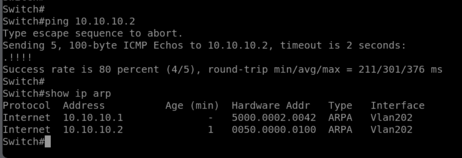 When we try to ping, we see 1st packet being dropped to discover MAC to IP mapping by ARP protocol and then ping gets successful and we finally see ARP entry